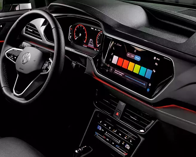 No VW Play do Taos, ajuste música, desempenho, climatização e iluminação interna com facilidade.